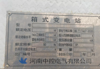630kVA箱式变电站,河南中控/华翔2022年11月产,型号YB-12/0.4-630,12kV高压/0.4kV低压,
