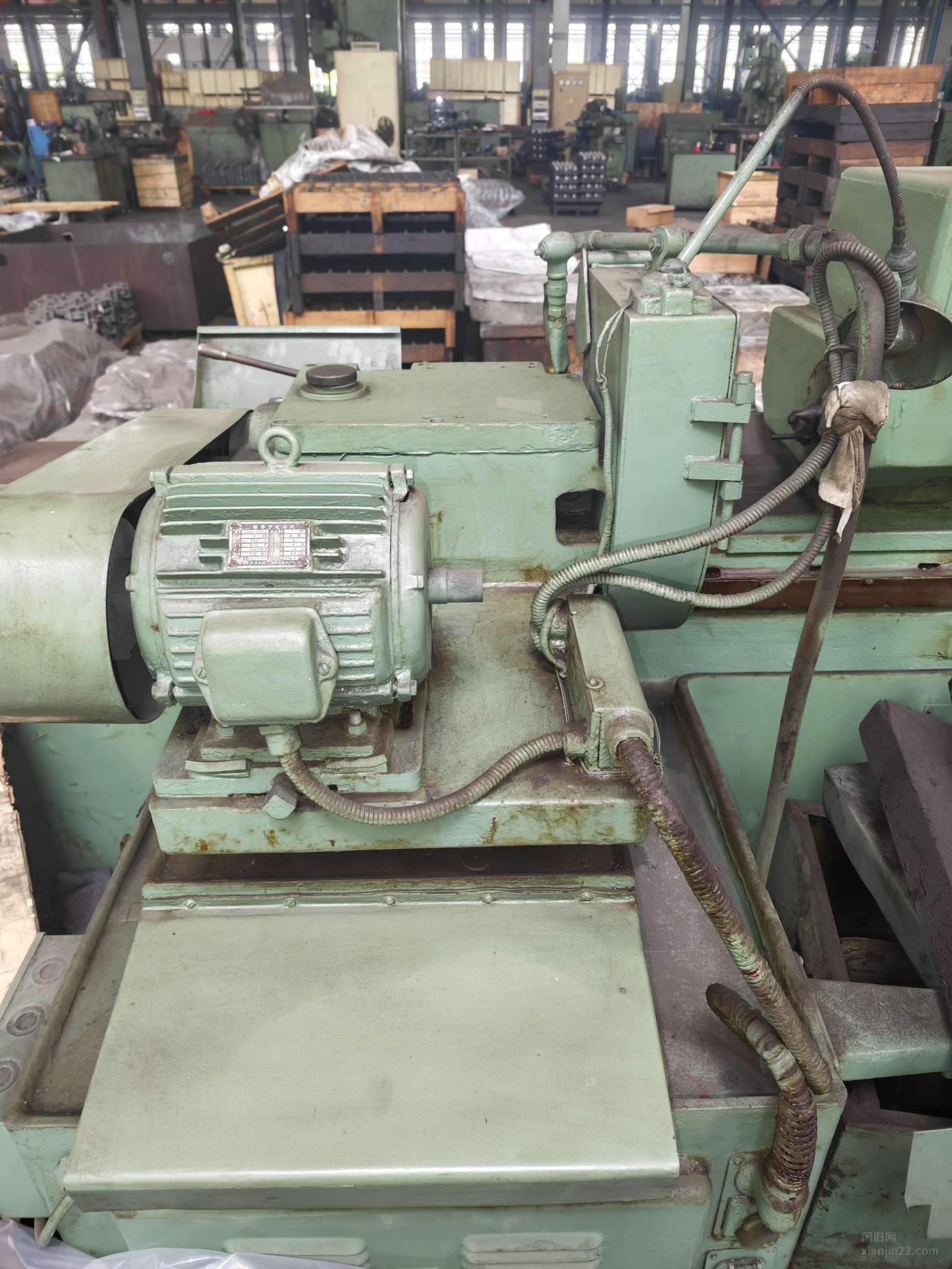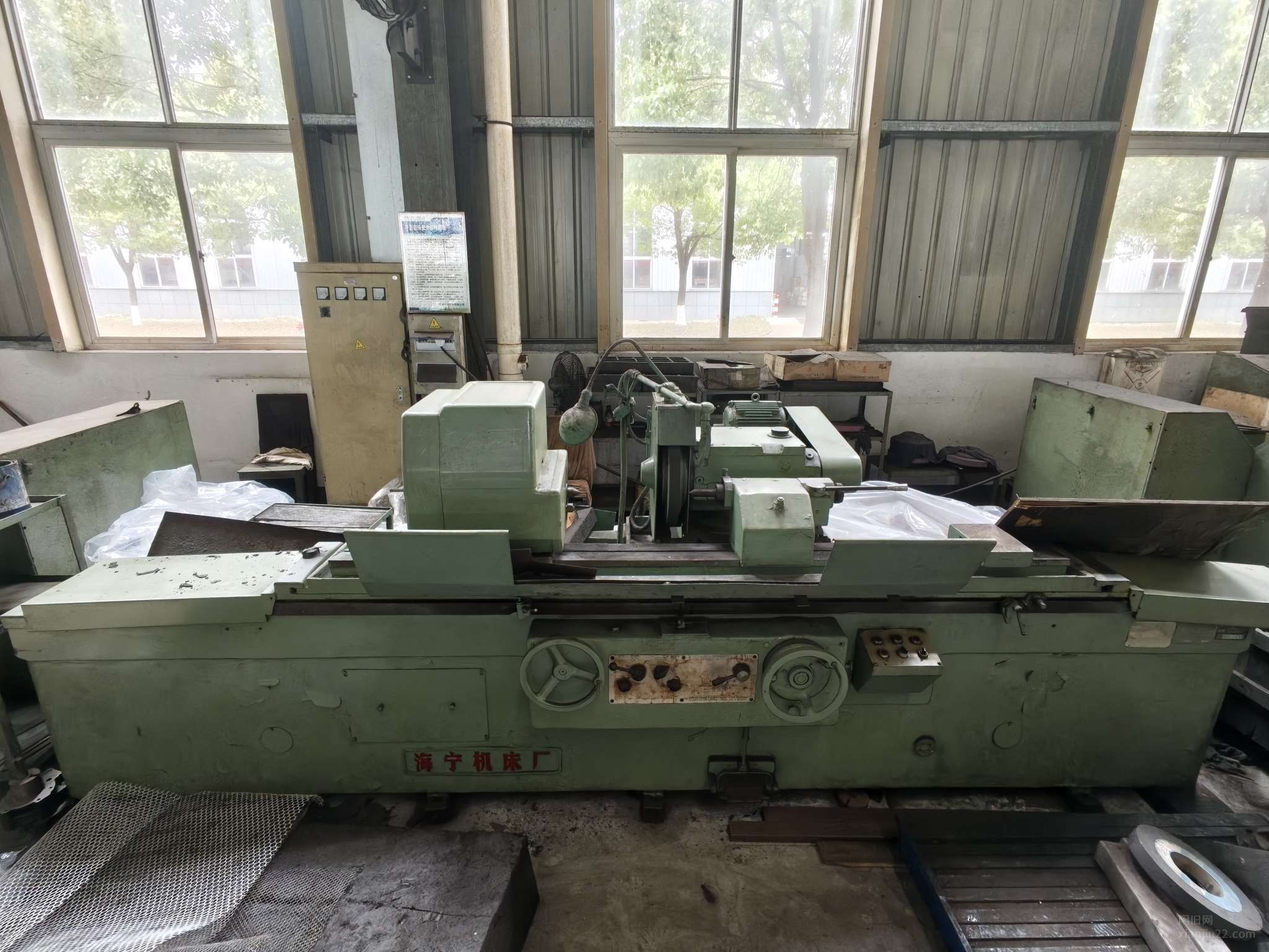 转让出售海宁机床厂M1432A型万能外圆磨一台,保存状态良好,最大磨削直径:320mm 最大磨削长度:1500mm,1977年出产(该设备为早期生产型号,用料扎实,壁厚及筋板设计冗余充足,结构刚性好,抗振性能优异,适合重切削及长期连续运行)