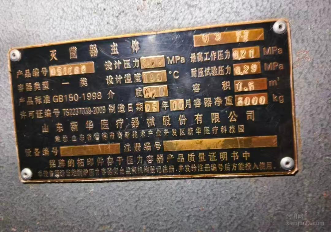 药厂升级出售2.46吨轨道式灭菌干燥机,3吨灭菌器主体 有意者电联!