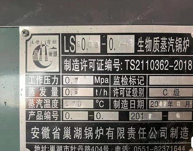 出售0.8吨颗粒蒸汽锅炉 9成新 使用2年