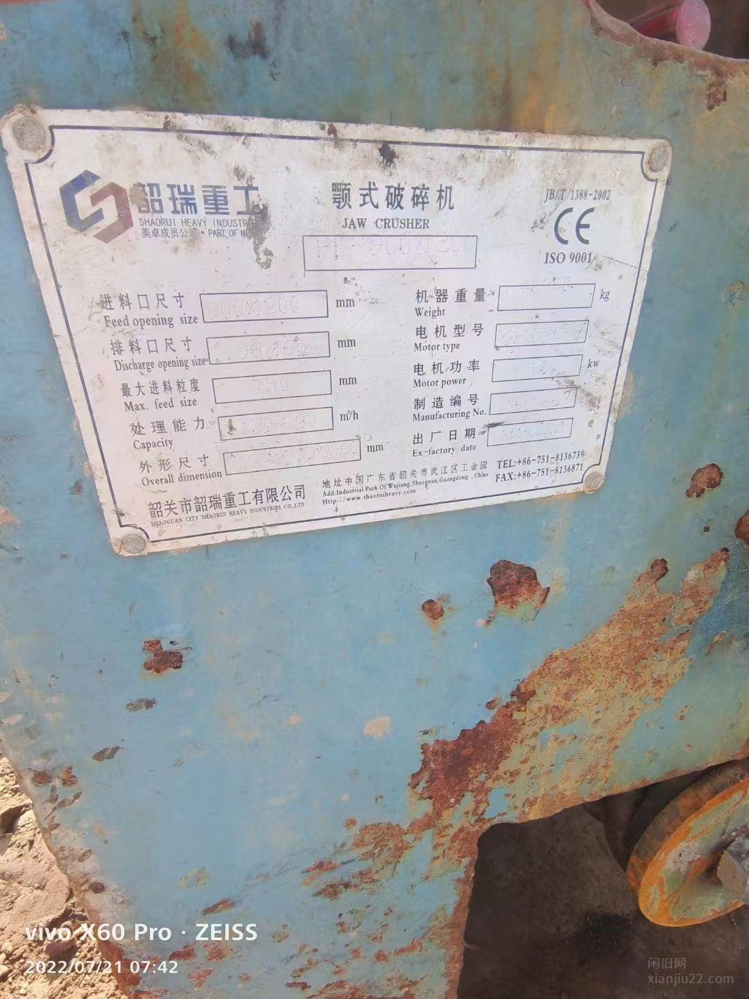 出售邵瑞重工912鄂式破碎机带给料机