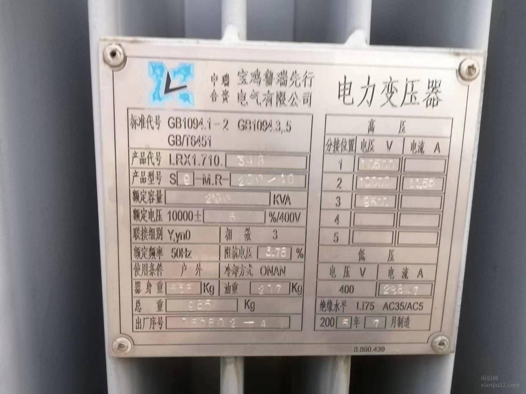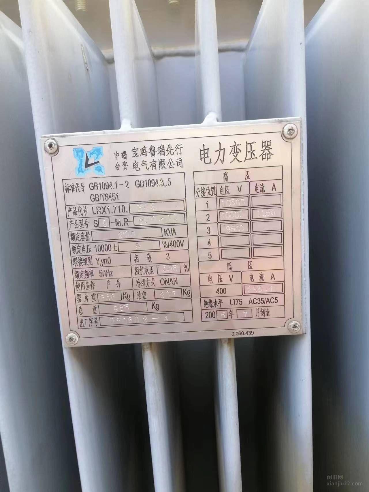 陕西西安出售两台S7-160,一台S9-200,一台S11-315变压器,共四台,一起打包6万,有意者电话联系。