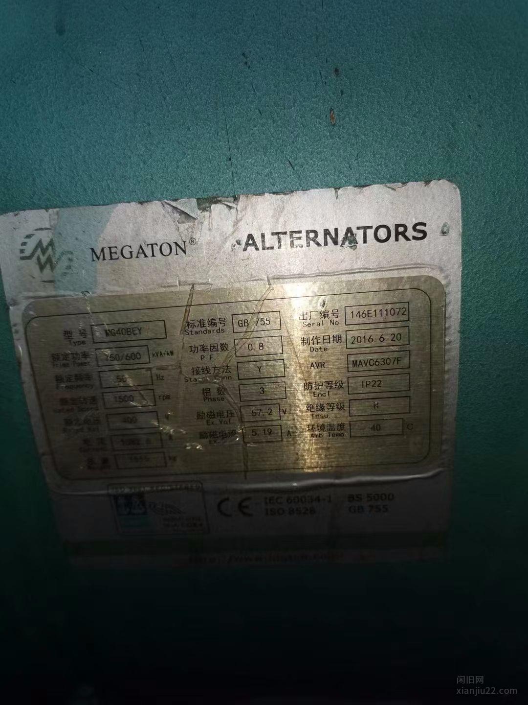 出售2台国产600kw发电机,工作才几百个小时,2018/6月的设备,价格8万,江苏恒通发电机制造有限公司。