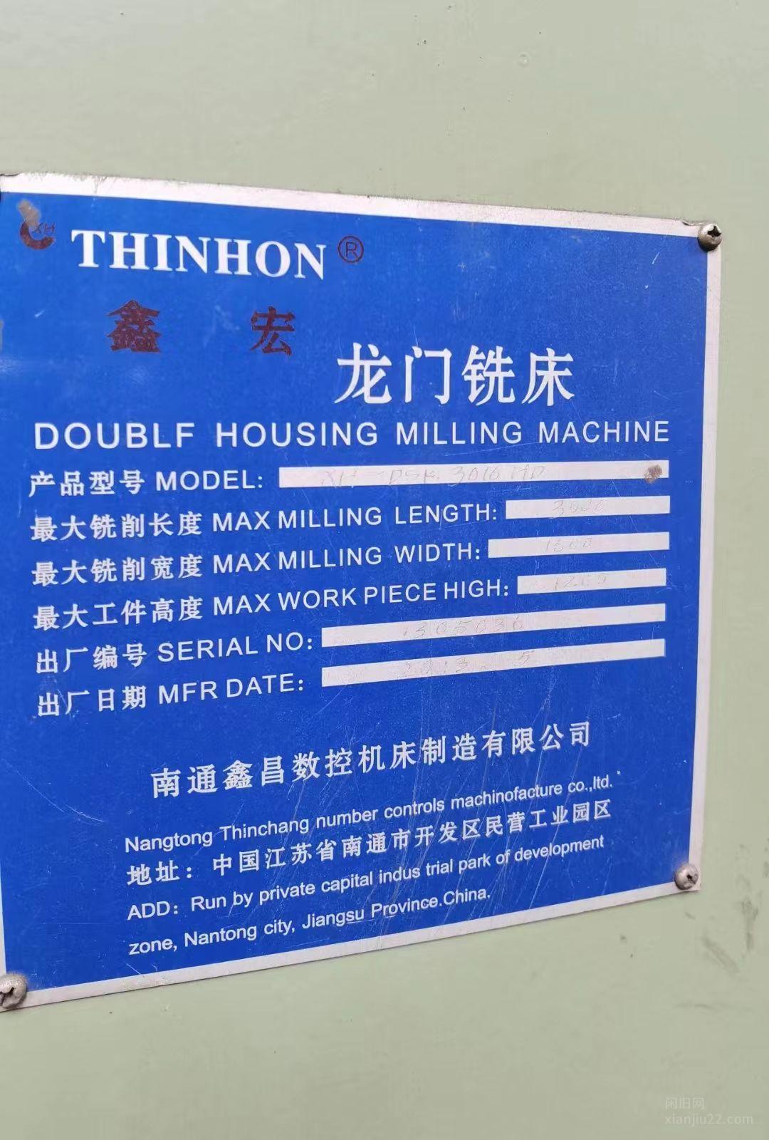 出售鑫宏3016龙门铣,价格20万,有意者电话联系。