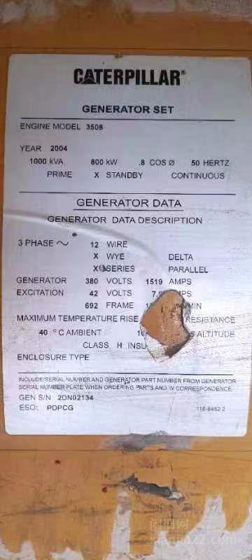 出售卡特800千瓦发电机组,工作2700-2800个小时左右,01年的,价格33.8万,有意者电话联系。
