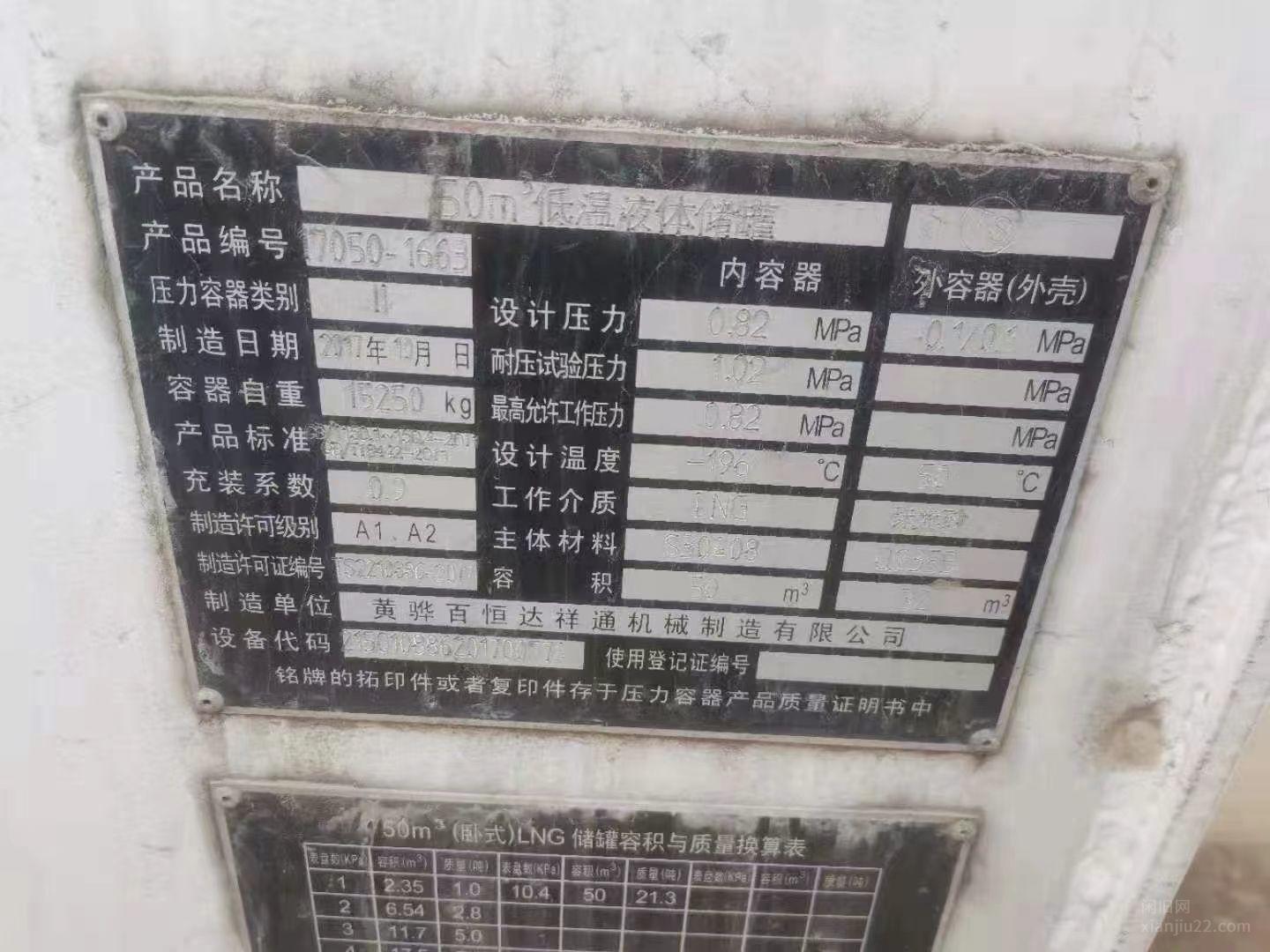 出售黄骅百恒达祥通50立方低温液体储罐,价格17万,有意者电话联系。