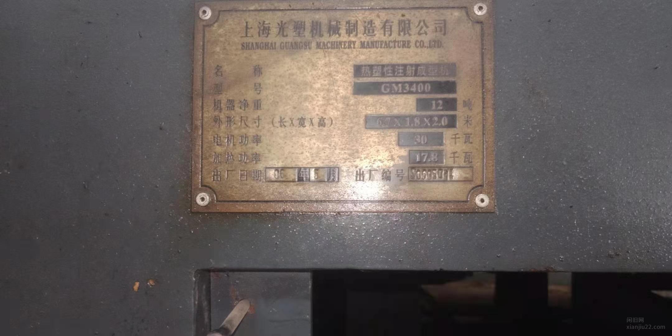 出售上海光塑GM3400注塑机,在位活机,使用率较少,一年可能就用了一个月左右