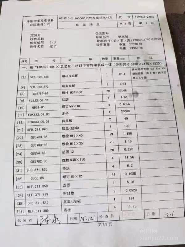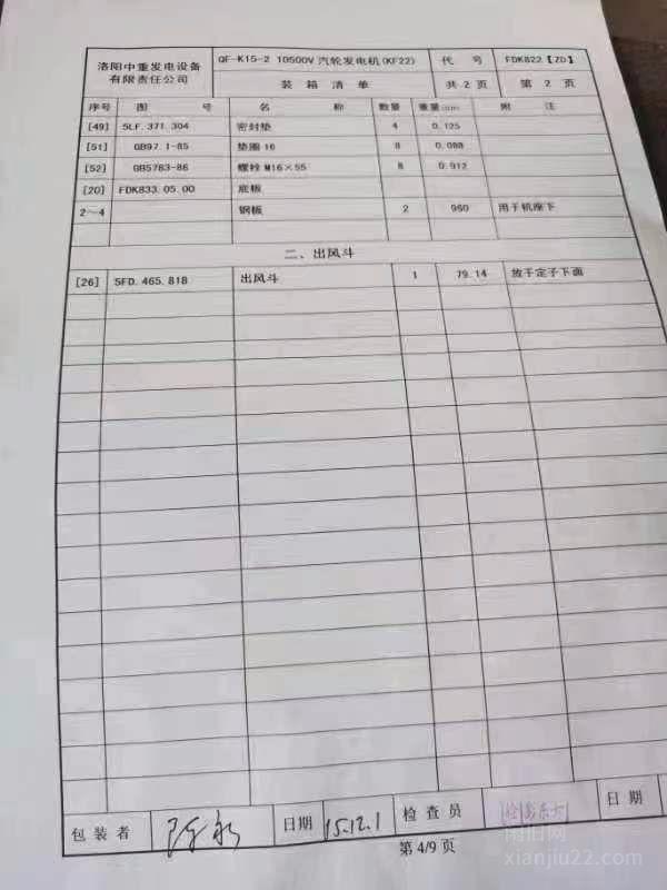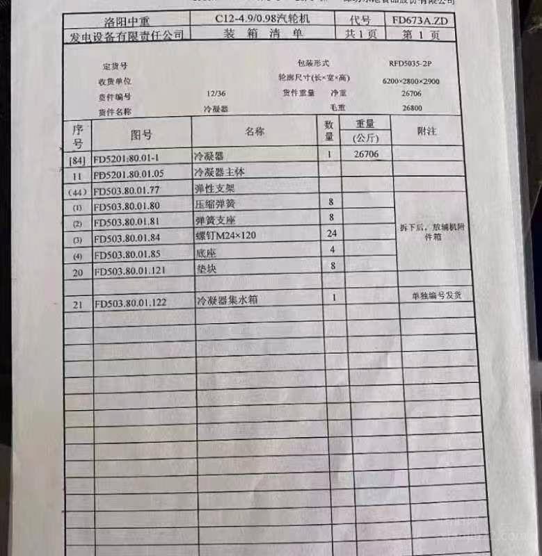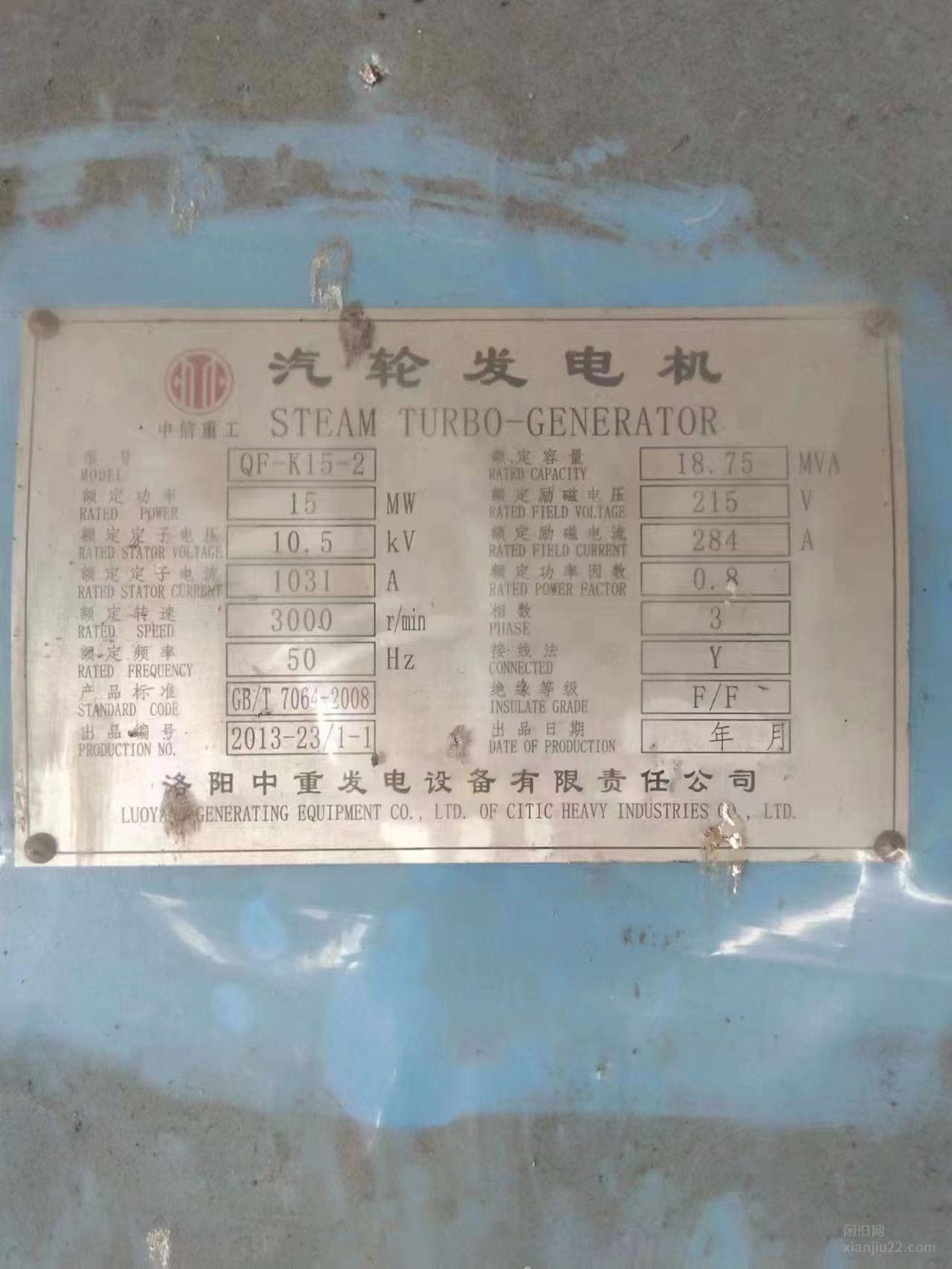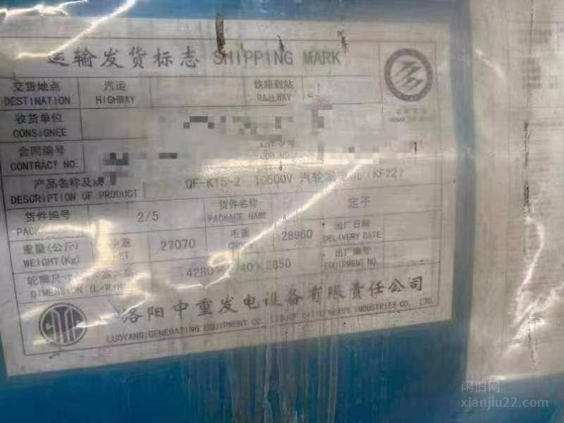 出售2014年洛阳中重汽轮发电机,c12/4.9/0.98,买来都没有用,还没有组装,15年买的,120-130万左右,有意者电话联系。