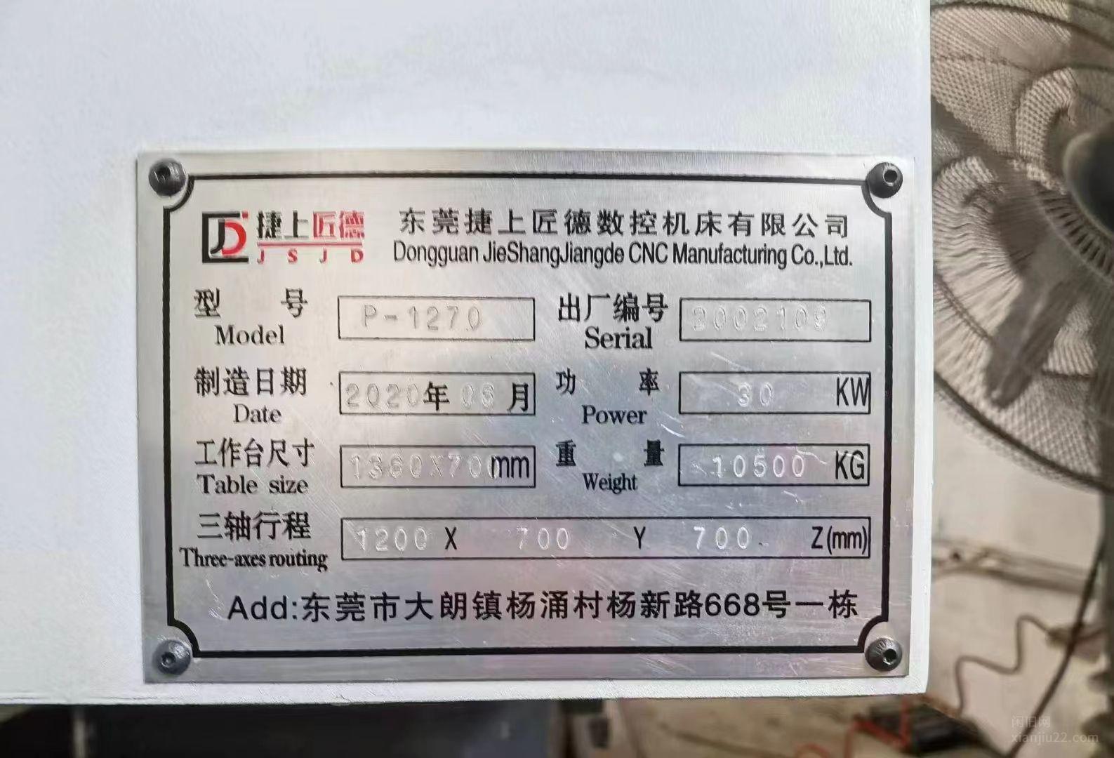 出售捷上匠德P-1270加工中心,价格22万,有意者电话联系。