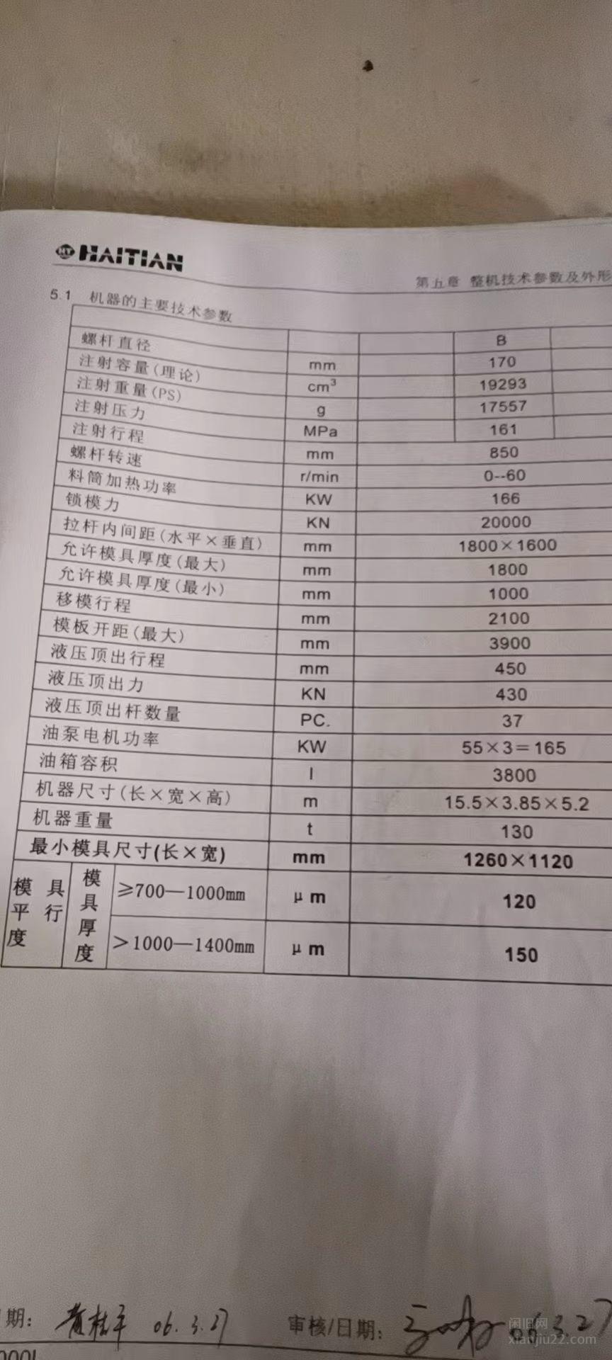 出售海天06年20000锁模力注塑机 及垃圾桶模具