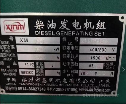出售工厂自用200KW柴油发电机,使用次数不多!价格面议!