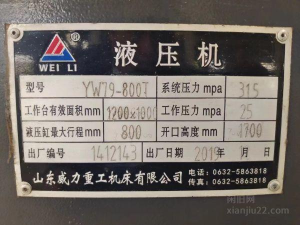 企业出售19年产山东威力800吨液压机,工作台有效面积1.2*1米,开口高度1.7米,当初买回来调试好后一直没用,相当于全新机二手的价格
