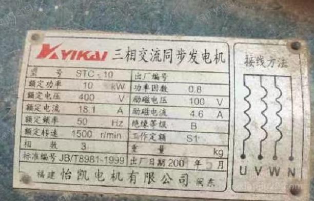 转让整套三项四线柴油发电机10KW,表面旧 工作时长不超五小时!