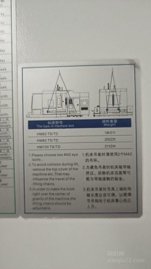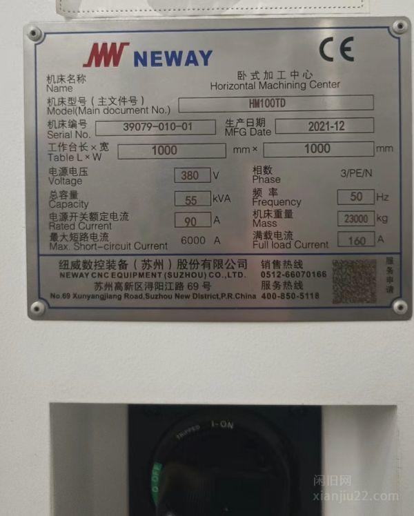 企业出售一台21年产纽威HM100TD卧式加工中心,工作台1000*1000,发那科系统,BT50链式刀库