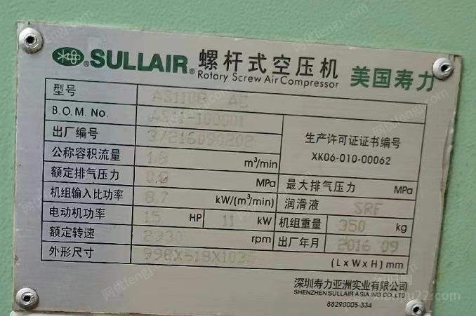 出售自家公司用空压机,电机11千瓦,机器使用5年,机器正常使用,转手原因,现规模加大,这台机器无法满足需求,转让给有需要的,由于机器过重,仅支持自提,地址在浙江省丽水市莲都区
