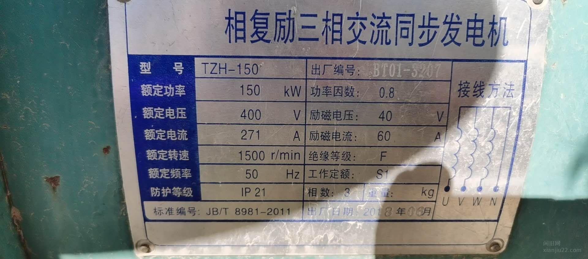 自用150千瓦发电机 8成新 工作时间短 保养维护及时。