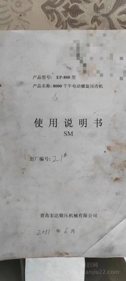 在位出售11年青岛宏达800吨电动螺旋压力机 双移动工作台面2.4X2.5米