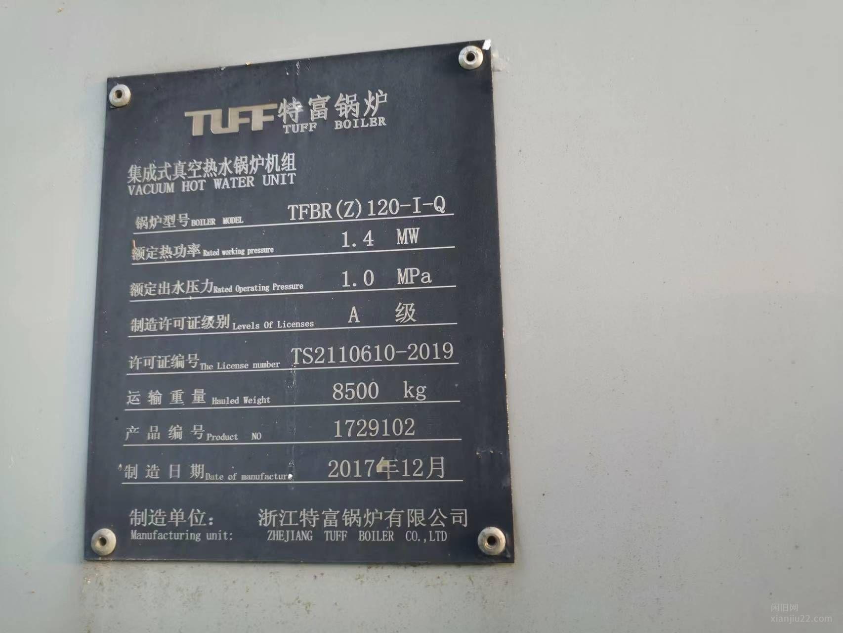 出售2018年2吨集成燃气热水锅炉转让