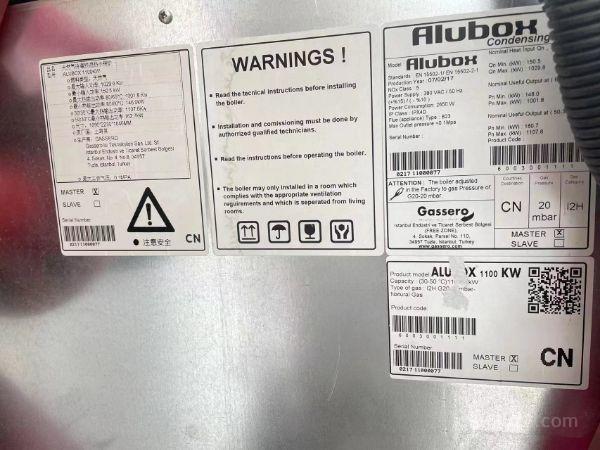 出售土耳其进口ALUBOx1100KW天然气冷凝预混热水锅炉,共25台,18万/一台,有意者电话联系。