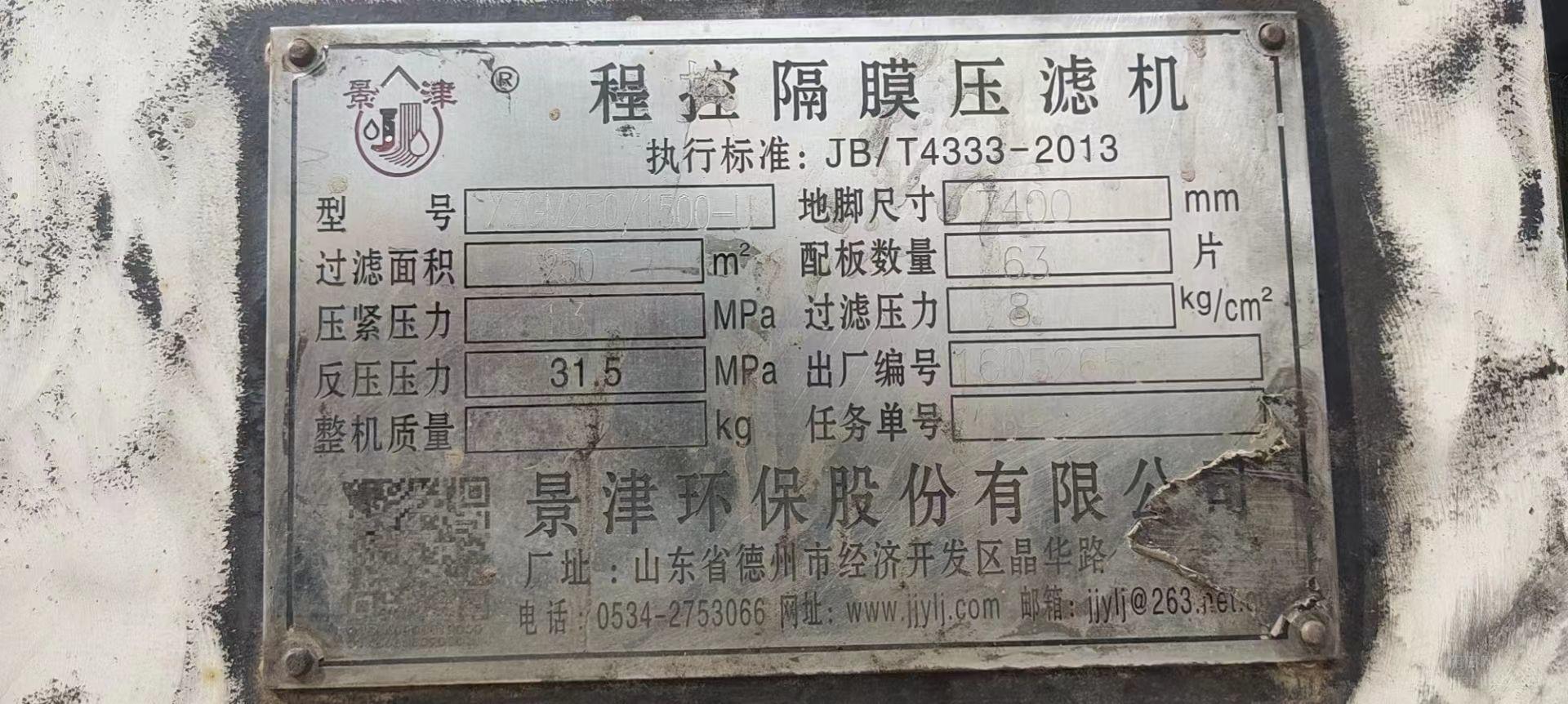 出售2台16年景津隔膜压滤机
