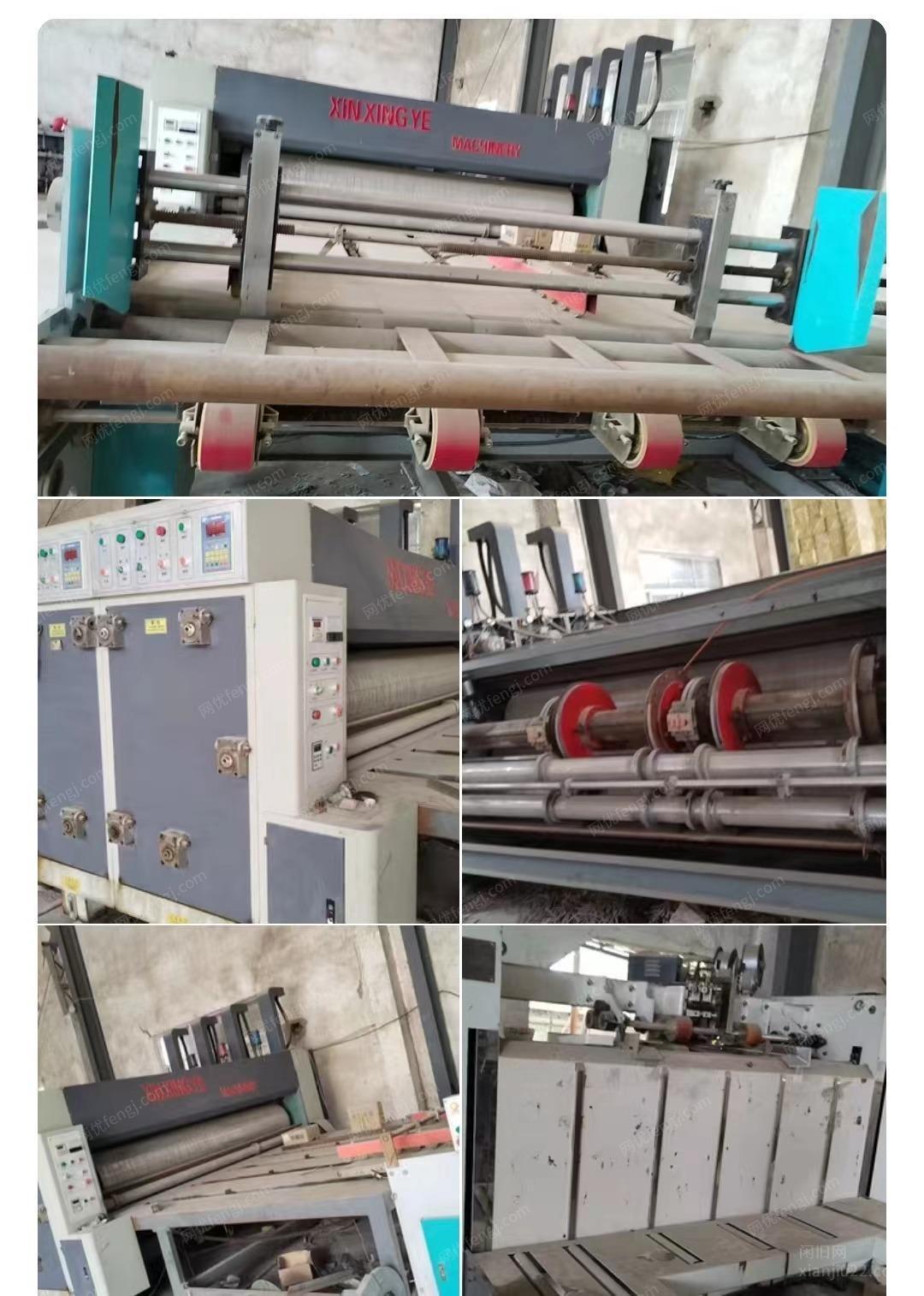 纸箱厂不干,设备处理,17年10月出厂的三色印刷开槽机,尺寸480*2900,产地河北,开槽部分刚加装打孔,另有一台半自动打钉机,也是17年10月出厂的,一台送纸机19年出厂的,机器都是正常生产的机器,买回去就能用、不单卖