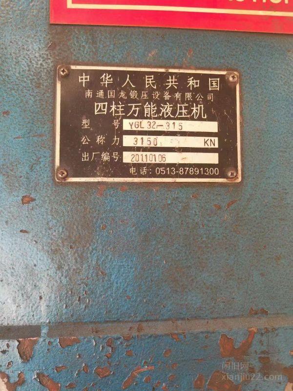 11年南通四柱315液压机台面一米七乘一米八、行程是一米半、有下底缸