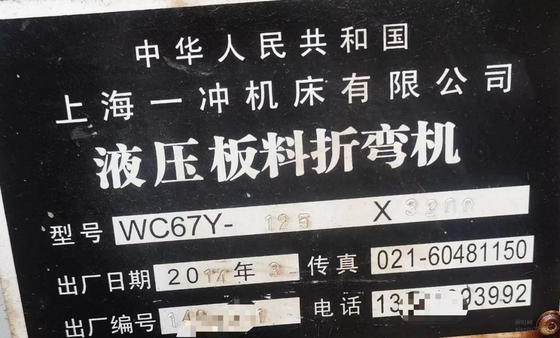 转让:上海一冲125吨3.2米折弯机,少用