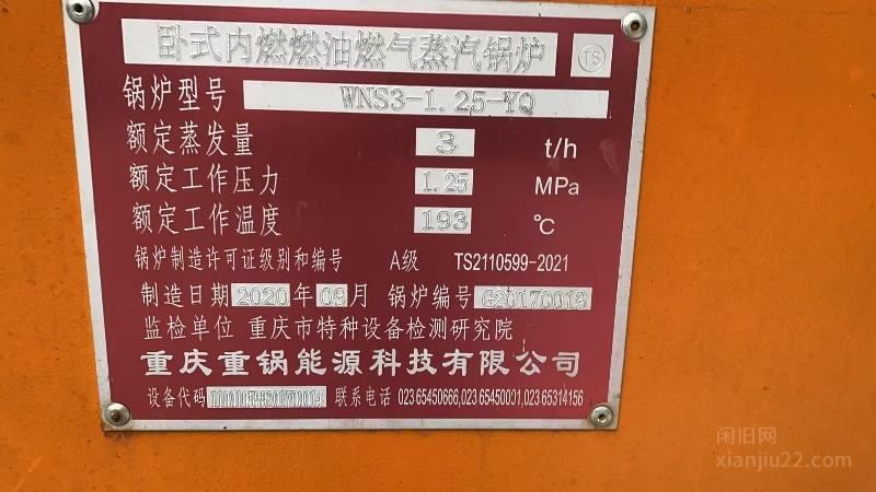 纯新未使用,3吨燃气蒸汽锅炉,2020年出厂,未使用过。