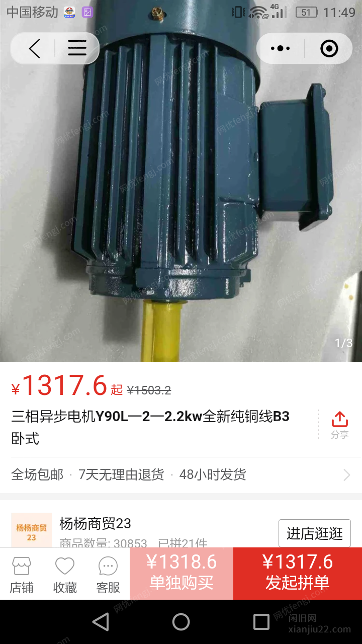 转让Y90L—2三相电动机