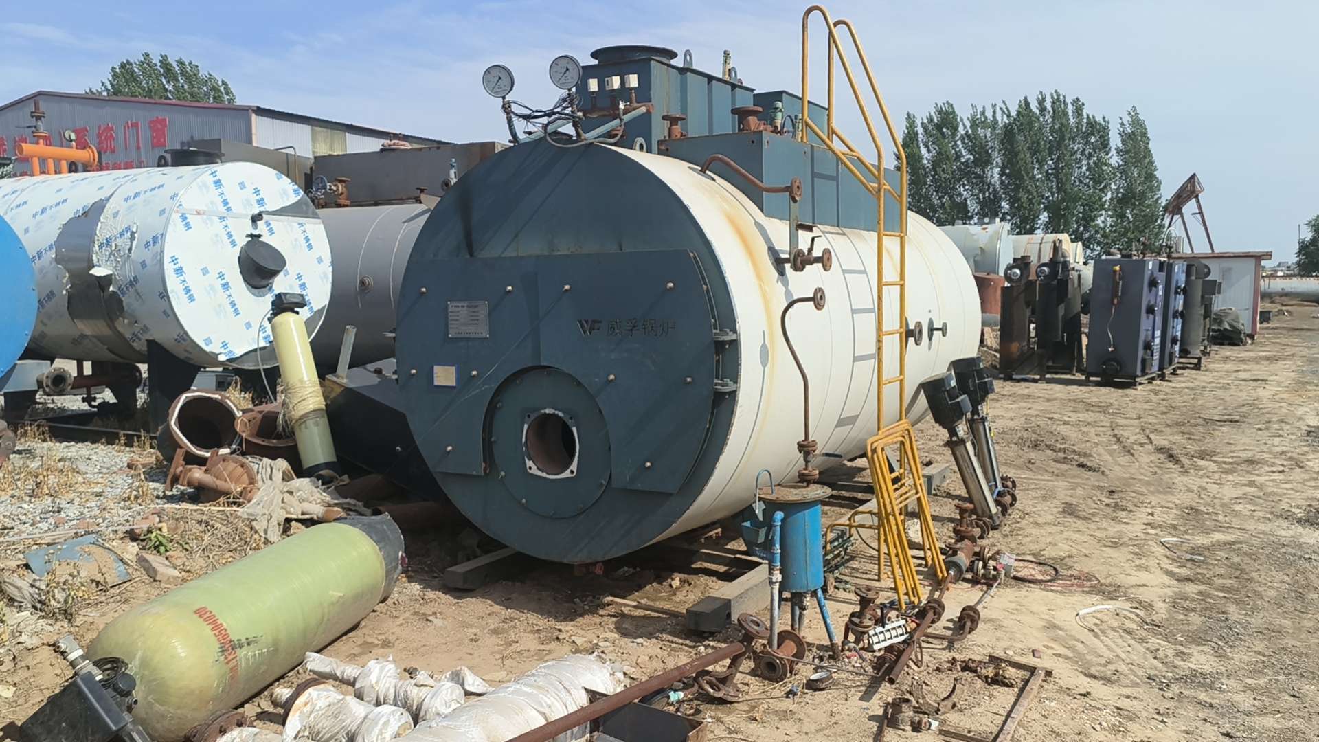 四吨燃气蒸汽锅炉,手续齐全,配件齐全。水泵,气包,烟筒。