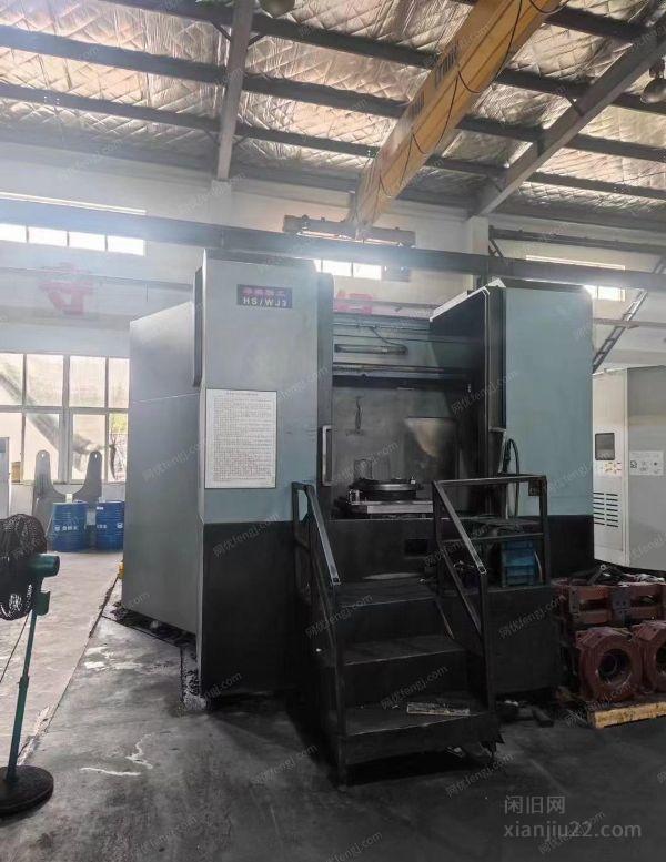 海天63HA双工位卧式加工中心,安装少用、高低档、齿轮头、中心出水,线轨、60把刀库。发那刻系统。