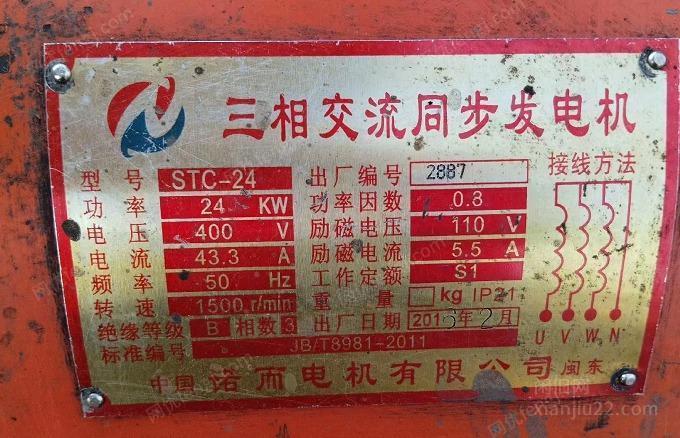 出售闲置发电机 型号是STC-24,功率是24Kw,电压是400V, 连用到放只用一年不到的发电机,机身是完 好的,有意者可以联系