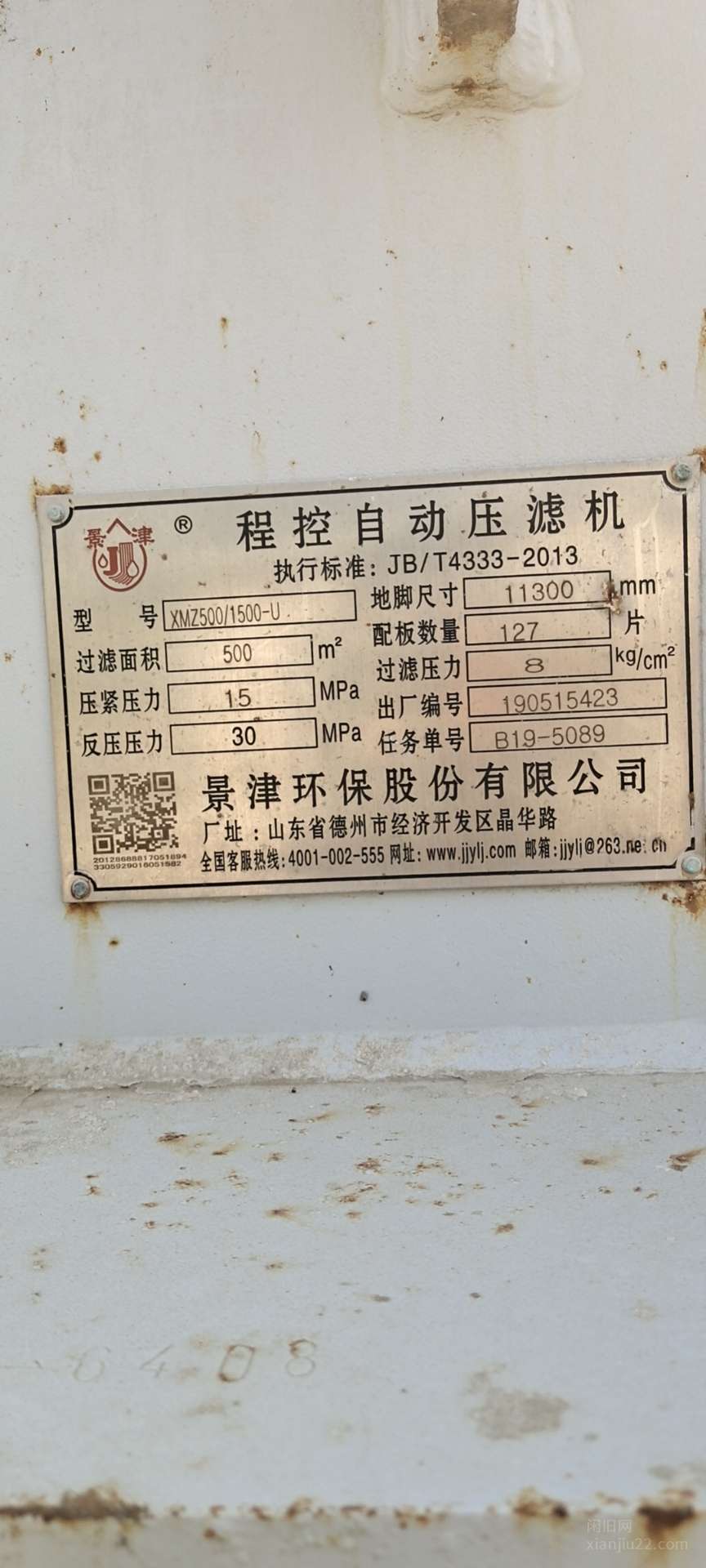 500平景津压滤机,成色好,少用