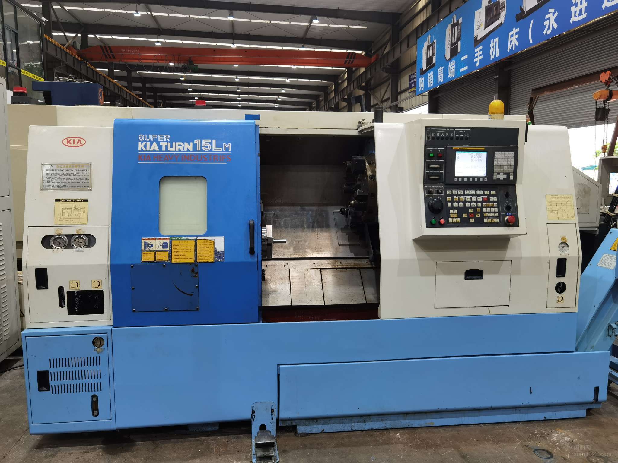 韩国起亚车铣复合车床,线轨机,发那科系统,带尾顶,伺服刀塔12T,主轴8寸卡盘,最大回转直径550mm,最大加工直径350mm,主轴6000转,动力头主轴8000转,行程X450mm Z550mm,C轴任意分度