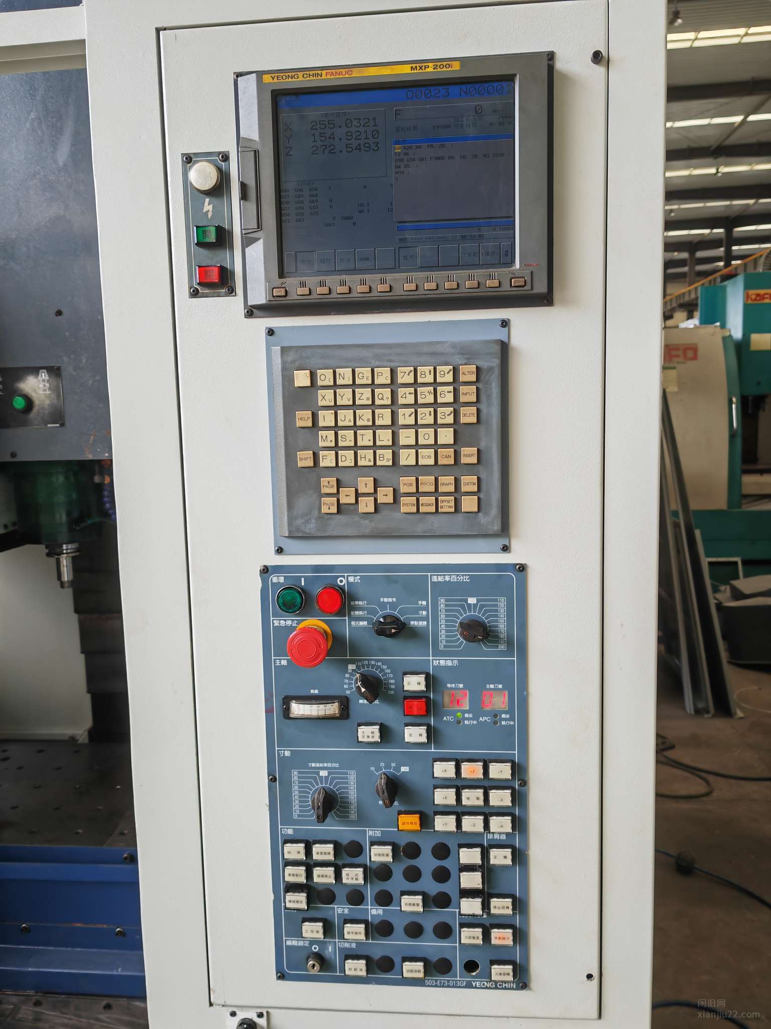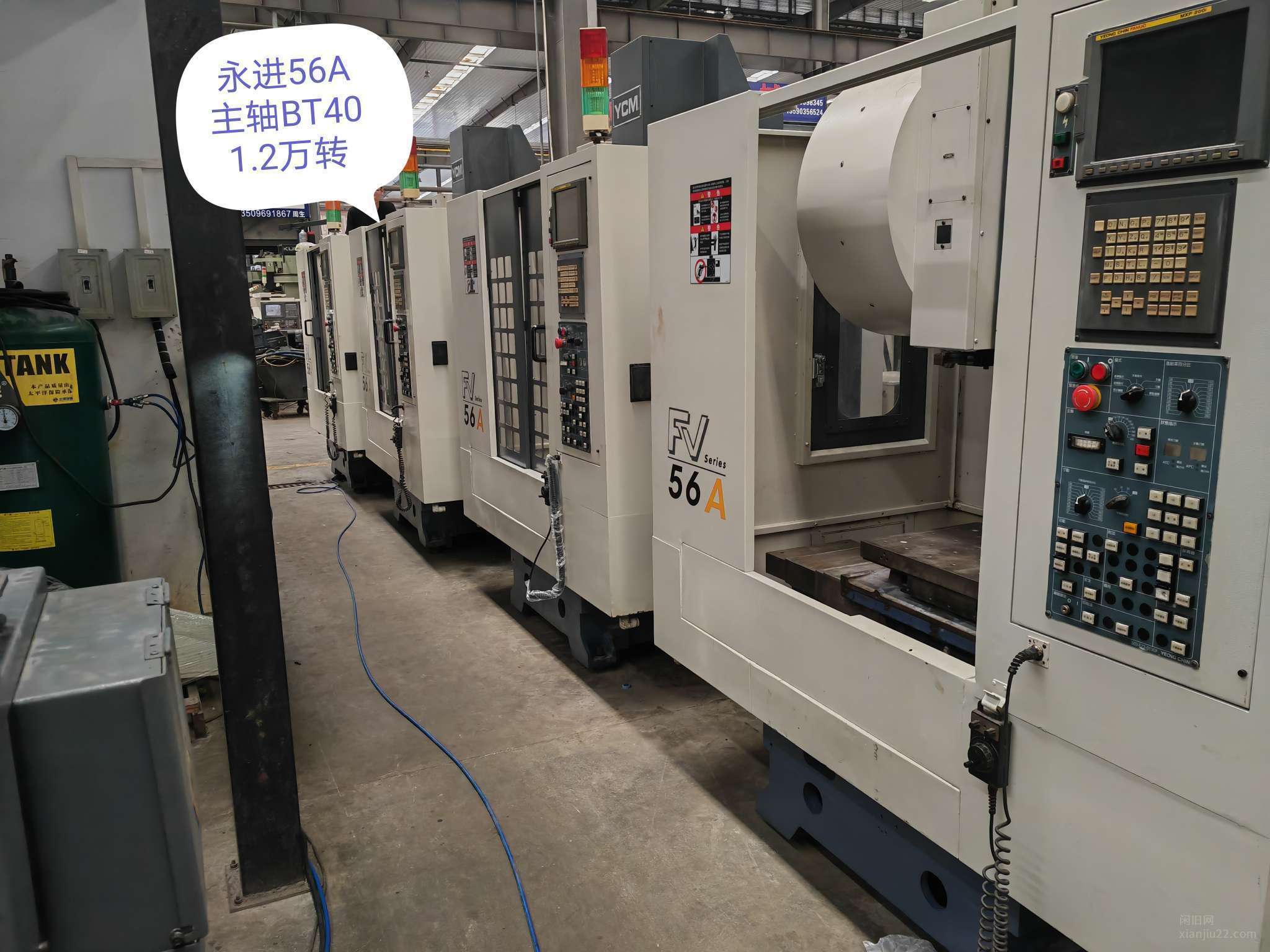 台湾机王永进FV56A,主轴BT40 12000转,三轴线轨,x轴行程560,Y轴420,Z450mm,刀臂式刀库,发那科系统200i高配系统,机况漂亮