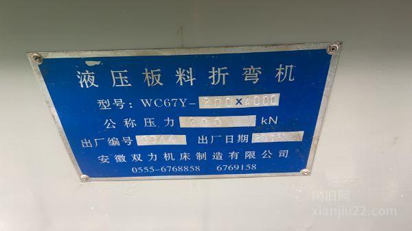出售安徽双力200吨*4米的折弯机,价格13.8万,有意者电话联系。