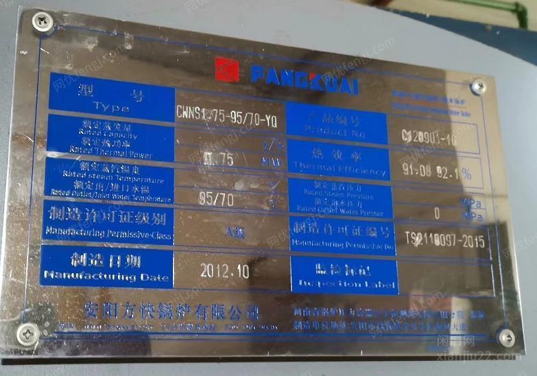 出售闲置燃气锅炉一台,安阳方块锅炉有限公司,2012年10月生产。