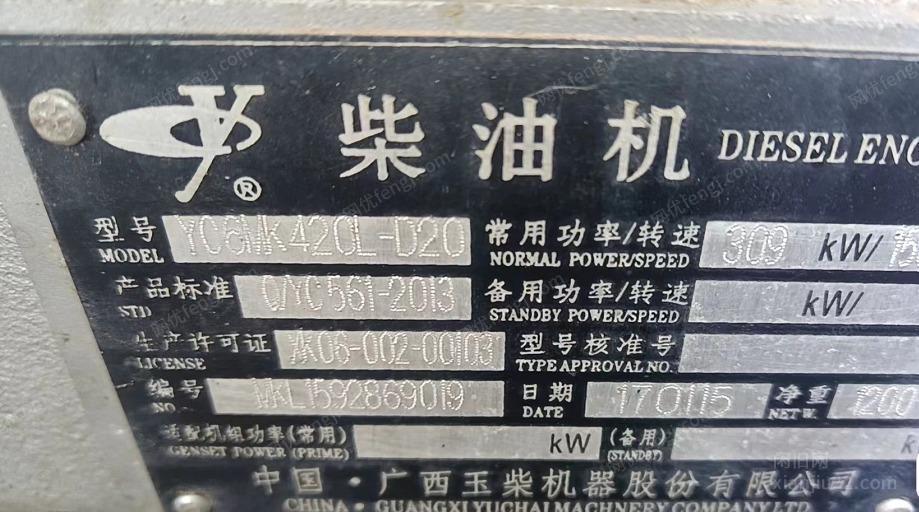 出售一台八成新300千瓦发电机,玉柴动力,工作300多个小时, 售价3.1W