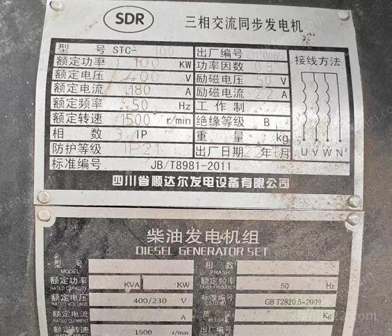 出售自用100KW柴油发电机 家里去年暑假经常停电买的 结果买回来一次没用就没停电了 买成2.5w