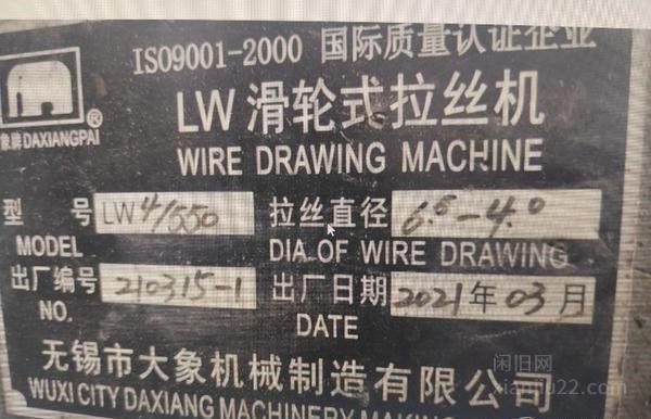 工厂转让21年闲置LW滑轮式拉丝机二套,因生产转行,2套使用了没多久的拉丝机转让。品牌无锡大象机械