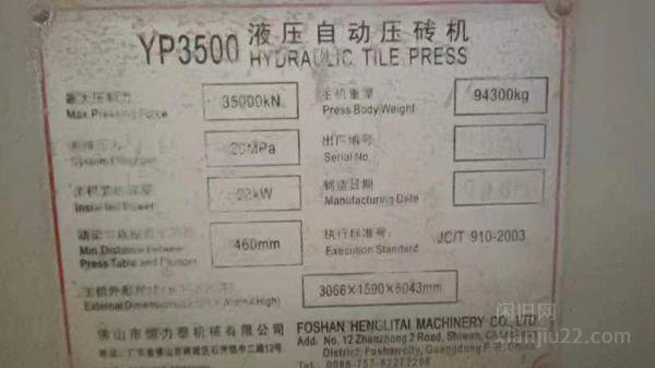 出售09年恒力泰陶瓷压机/液压自动压砖机