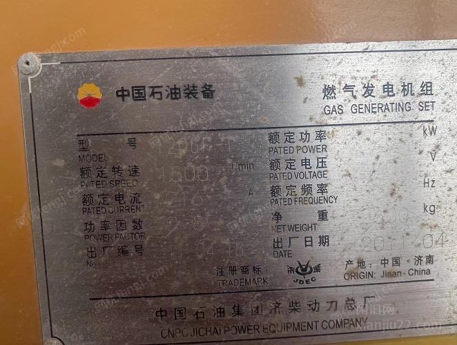 出售闲置120千瓦燃气发电机组,2011年出厂,价格电话咨询