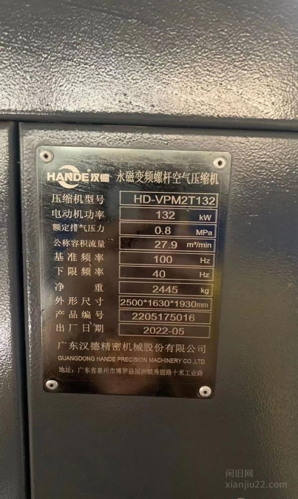 汉德132Kw双极压缩永磁变频压力8公斤使用几百小时