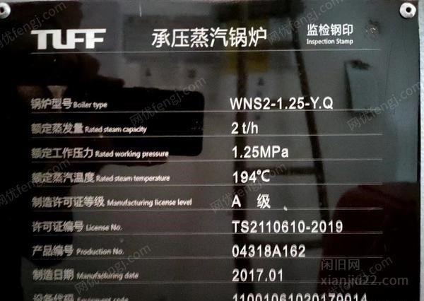 工厂因年底搬厂出售1台使用中2017年两吨燃气蒸汽锅炉,