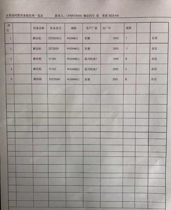 工厂出售闲置5台磨齿机,2台东德zstz630、3台秦川磨齿机y7163,