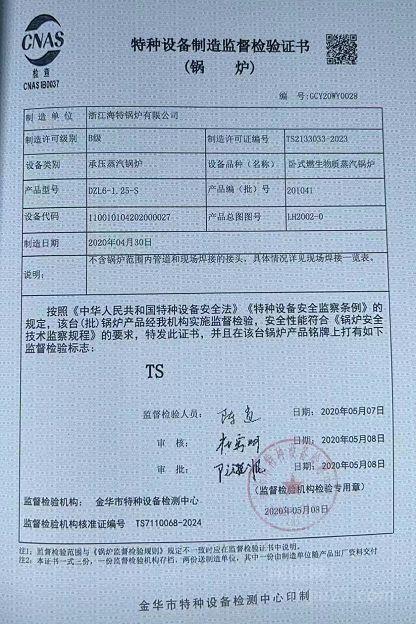 出售1台20年浙江海特6吨生物质蒸汽锅炉,手续齐全