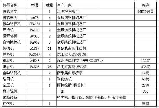 纺织厂停产处理A454E型粗纱机2台132锭、FA503细纱机23台456锭、FA306A经纬并条机4台、A035C/B混开棉机2台 、FA106开棉机2台、A186F梳棉机11台、萨维奥自动络筒机2台72锭、兴化络筒机1台60锭、自动抓棉机FA002三台、AFA161振动给棉机4台、清花车头A076四台、清花除尘1台、空压机22KW1台、磨皮辊机300一套、试验设备:强力机、捻度仪、细纱测长仪、粗纱测长仪、打包机(三缸)1台