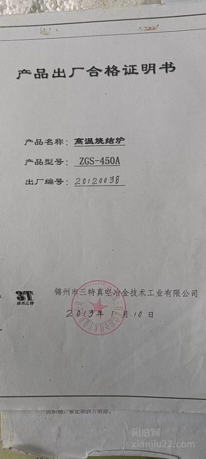 出售12年锦州三特ZGS-450A 高温烧结炉