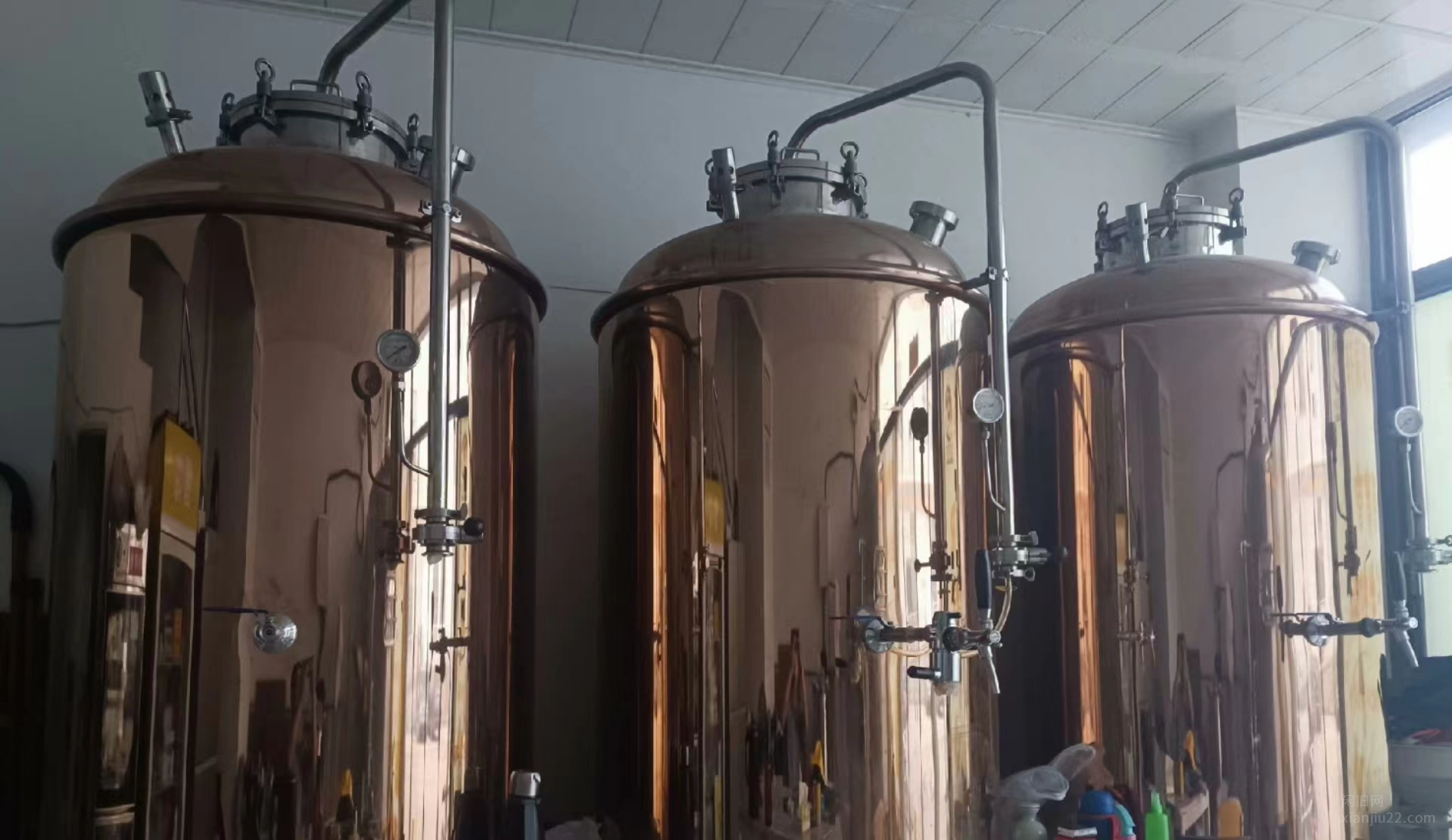 18年白酒12个头直线灌装机,洗瓶机,冲瓶机,吹风机,烘干机,打包机,压盖机及生产线还有4吨水处理、20年底又购进全自动旋盖机,两用贴标机,喷码机、两个锅炉,一个煤气气化器,两个不锈钢锅,不绣钢存酒灌十个(3个10吨的,两个7.5吨的,5个5吨的),还有一些小设备,包括小酒灌5个(1吨2个,半吨2个,2吨1个)过虑机,酒泵2个,不锈钢管子80米,卡子五十个,微孔过滤机两台,还有水泵9个等