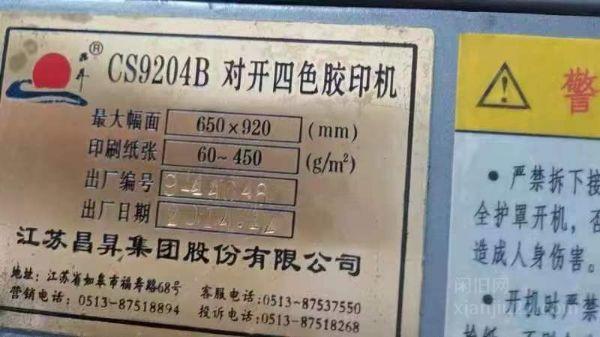 出售1台14年昌昇对开四色胶印机920 标配